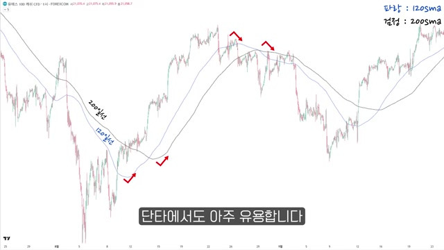 - 120일선을 보는 이유는 200일선보다 상방이 하방으로 더 빨리 꺾여 추세 변화 신호를 일찍 감지할 수 있기 때문이다.