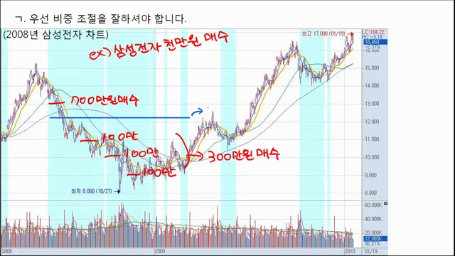 - 분할 매수와 물타기에 대해 더 많은 유의사항이 있지만, 전문적인 내용이므로 추후 기법 강의 영상을 통해 자세히 다룰 예정이다 .