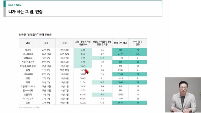 - 수급 불균형: 외국인이 특정 종목을 평균 30% 매수해왔다면, 현재 다양한 이유(기업 성장성 둔화, 한국 자산 매력도 하락 등)로 인해 평균보다 적게 매수하고 있는 갭이 바로 빈집이다.