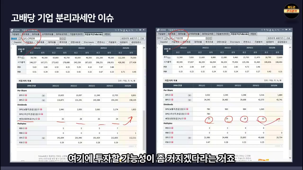 - 기업은행과 KB 금융의 배당 성향은 26%, 28% 수준으로, 앞으로 배당을 더 늘릴 가능성이 크며, 이는 외국인이나 국내 큰 손들의 투자 가능성을 높인다.