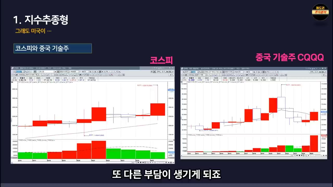 - 중국 기술주 ETF(CQQQ)는 급등 후 결국 물리는 경우가 많아, 성장주를 가져가고 싶더라도 코스피와 중국은 배제해야 한다.