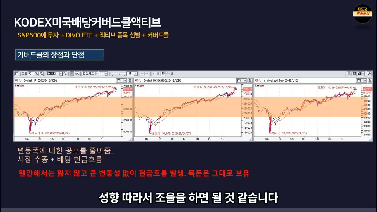 - 매니저가 종목을 잘 선별해 주며, 커버드 콜은 기본적으로 배당 현금 흐름 때문에 가져가는 것이다.