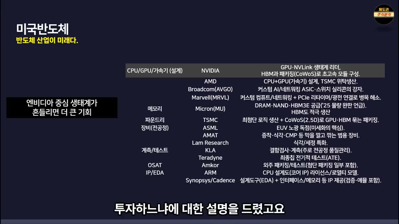- 반도체 산업의 안정성: 엔비디아, AMD, 마벨, TSMC 등 핵심 기업들이 포진한 AI 시대의 반도체 시장, 특히 하드웨어 시장은 망하기 어렵다.
