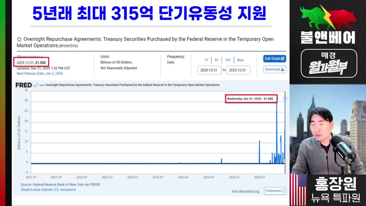 - 연준의 행보: 12월 31일 모두가 휴식을 취할 때 315억 달러의 단기 유동성을 단 하루 만에 주입했다