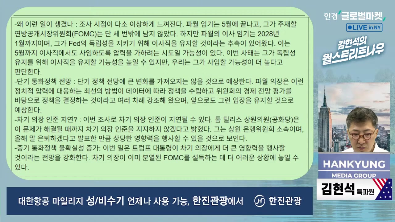3. 파월 의장 형사 고발 위협 사태와 월가의 반응