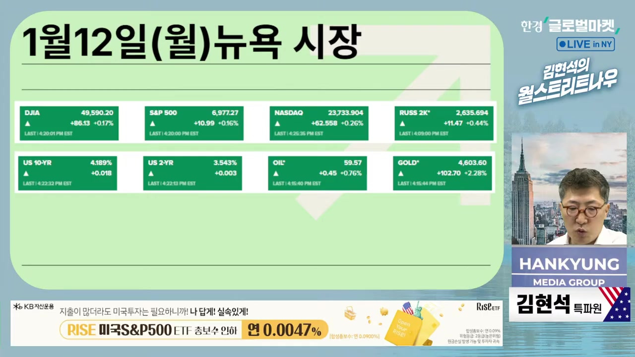 1. 뉴욕 금융시장 개장 및 초기 반응 (1월 12일 월요일)