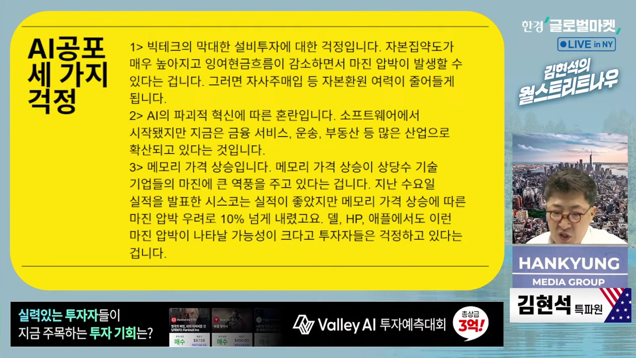 - 현재 빅테크에 대한 시장의 내러티브(Narrative)가 매우 안 좋으며, 이는 막대한 투자(빚을 내서 200~300% 투자)에 비해 수익화가 불확실하다는 걱정 때문이다.