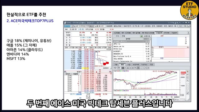 - 주요 종목: 구글(가장 높은 비중), 애플, 아마존, 엔비디아, 마이크로소프트 등이 포함된다 .