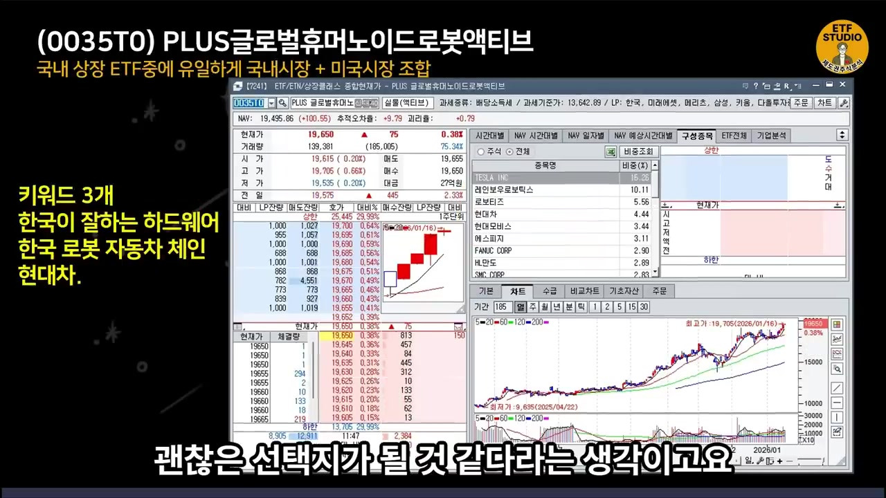 - 플러스 글로벌 휴먼노이드 로봇 액티브: 현대차, 테슬라 등 국내외 혼합. 한국의 하드웨어 강점과 엔비디아 협력 강조.