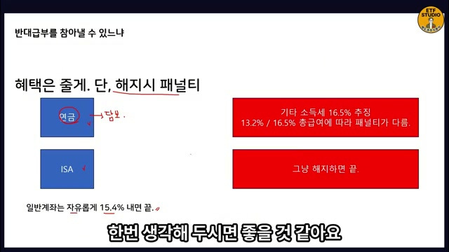 - ISA 계좌: 해지 시 아무런 페널티가 없다.