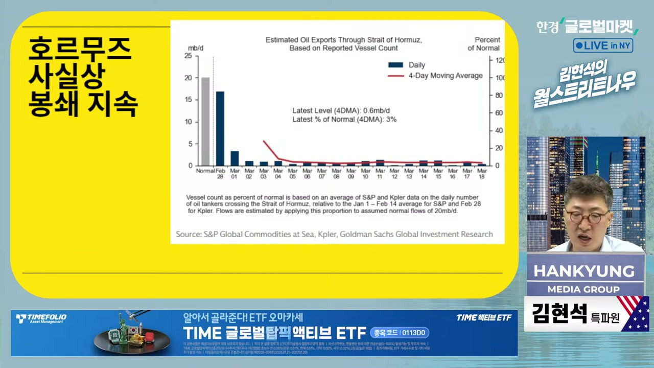 - 호르무즈 해협 개방 여부가 모든 문제의 핵심이며, 해협이 계속 막히면 유가는 계속 올라갈 것이고, 이는 트럼프 대통령의 중간 선거에 부정적인 영향을 미칠 것이다.