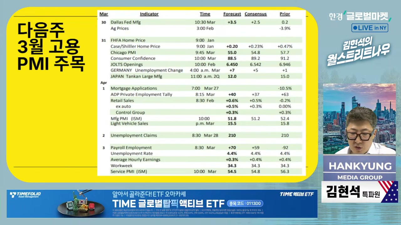 - 미국 공급관리협회(ISM)의 3월 제조 구매 관리자 지수(PMI)는 1일, 서비스 PMI는 3일에 각각 발표된다.