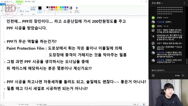 - PPF는 도장면을 기스 없이 보호해준다는 이야기를 듣고, 결국 인천의 유명한 PPF 시공업체에서 약 200만원에 시공하였다 .
